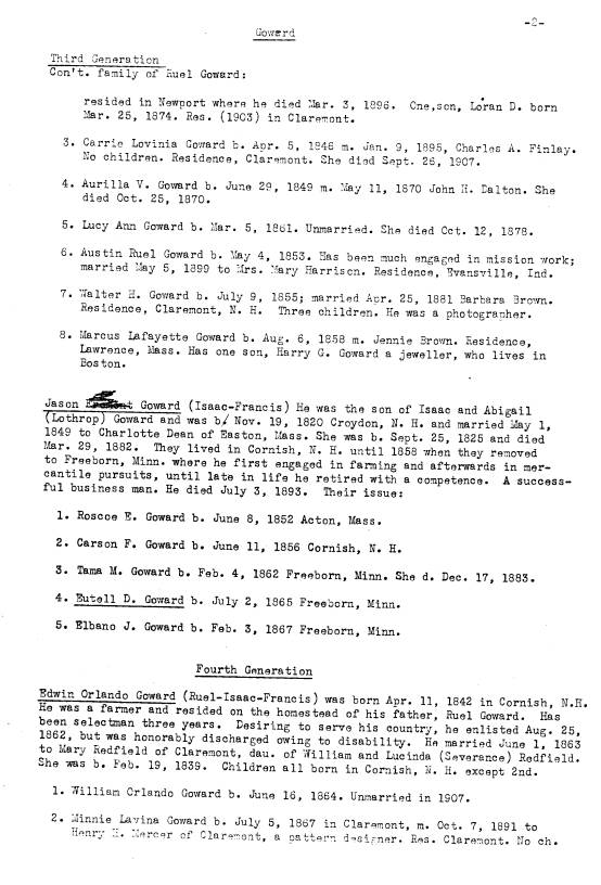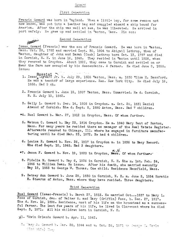 I was given a typed list in 1992 by Curtis D Goward of Richfield Mn, which I’m sure all American Gowards will know. It seems one Francis Goward arrived in a leather bag (“a handbag?!). Here are a couple of pages (I think I had three once)