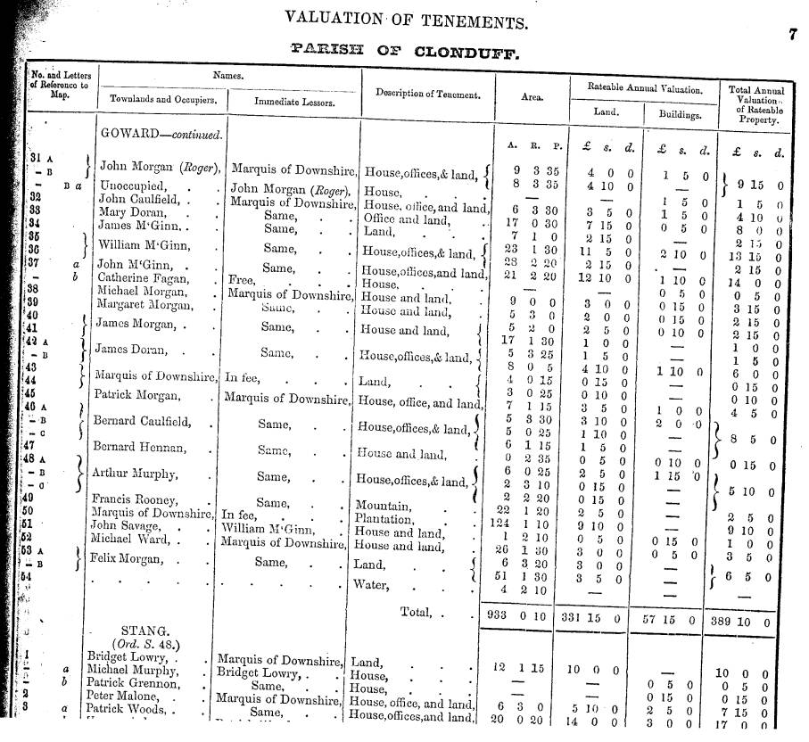 These documents should be below. It seems that 10 persons, all Irish, lived in Goward in 1659, and a lot more in the a860s when Goward was owned by the Marquis of Downshire.